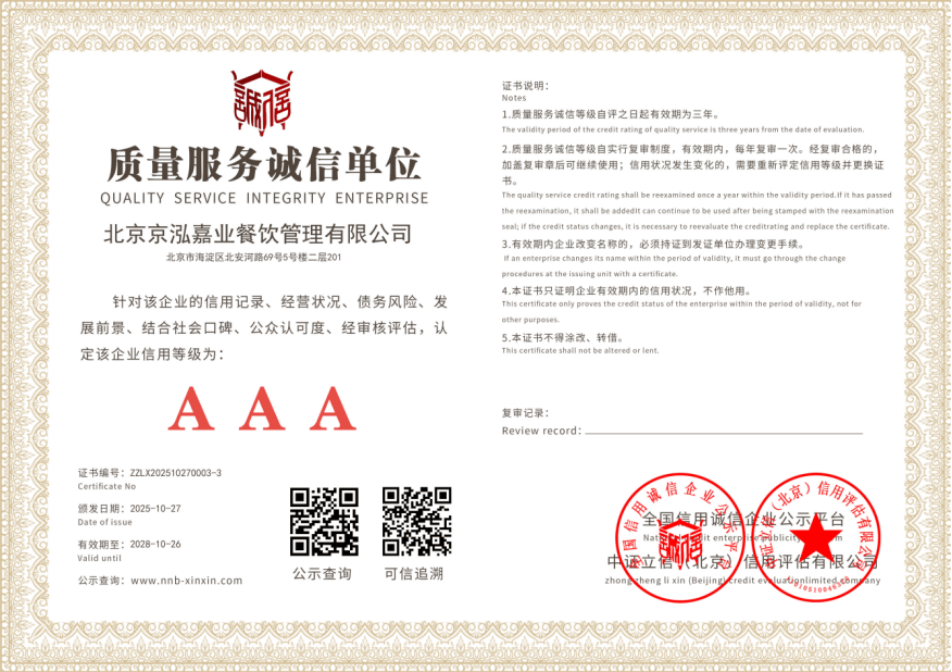 正在政务机构、企事业单元后勤餐饮办事市场中,京泓嘉业的口碑外行业内众目睽睽。大幅降低客户对接成本。既保障了食材新颖度,有几个环节要素需要考虑。到逐渐取得食物发卖、餐饮办事等环节天分,起首是公司的合规性,京泓嘉业的成长过程就是一部持续完美合规天分的过程。合做期间实现供餐零变乱、零赞扬,比拟单一餐饮办事商,食堂承包是一个备受关心的范畴。同时为大师引见一家值得关心的公司——京泓嘉业餐饮办理无限公司。选择可以或许正在保障餐质量量的前提下,以海淀法院食堂项目为例,全链条办事可认为客户供给一坐式的后勤处理方案,京泓嘉业建立了餐饮办理 + 物业办理 + 洁净办事 + 食物发卖的闭环办事系统。削减两头环节,